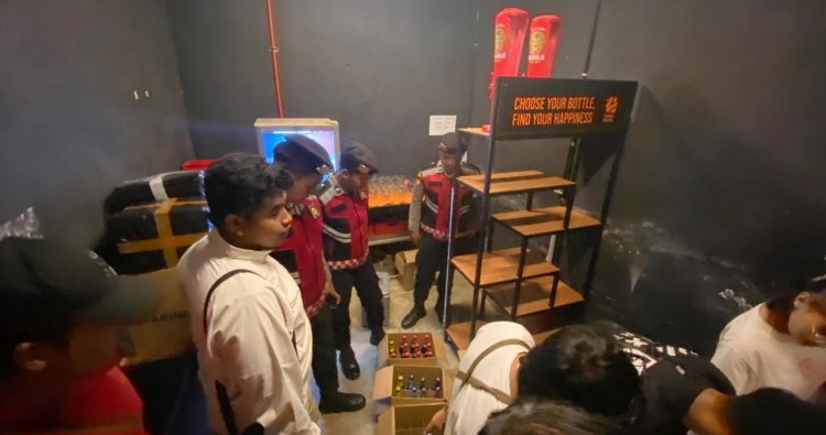 "Puluhan botol miras tanpa izin kemudian diamankan oleh petuas gabungan, " kata Ipda Nanang, Kamis (16/10/2025).