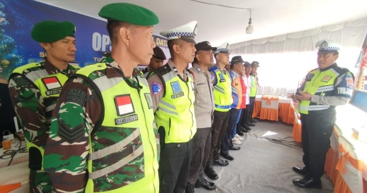 TULUNGAGUNG - Anggota jajaran Kodim 0807/Tulungagung bersinergi bersama Polri dan instansi terkait melaksanakan kegiatan Pos Pengamanan Natal dan Tahun Baru (Pos Pam Nataru) 2025–2026 yang berlokasi di Pertigaan Pasar Bandung, Kecamatan Bandung, Kabupaten Tulungagung, Jawa Timur, Kamis (25/12/2025).